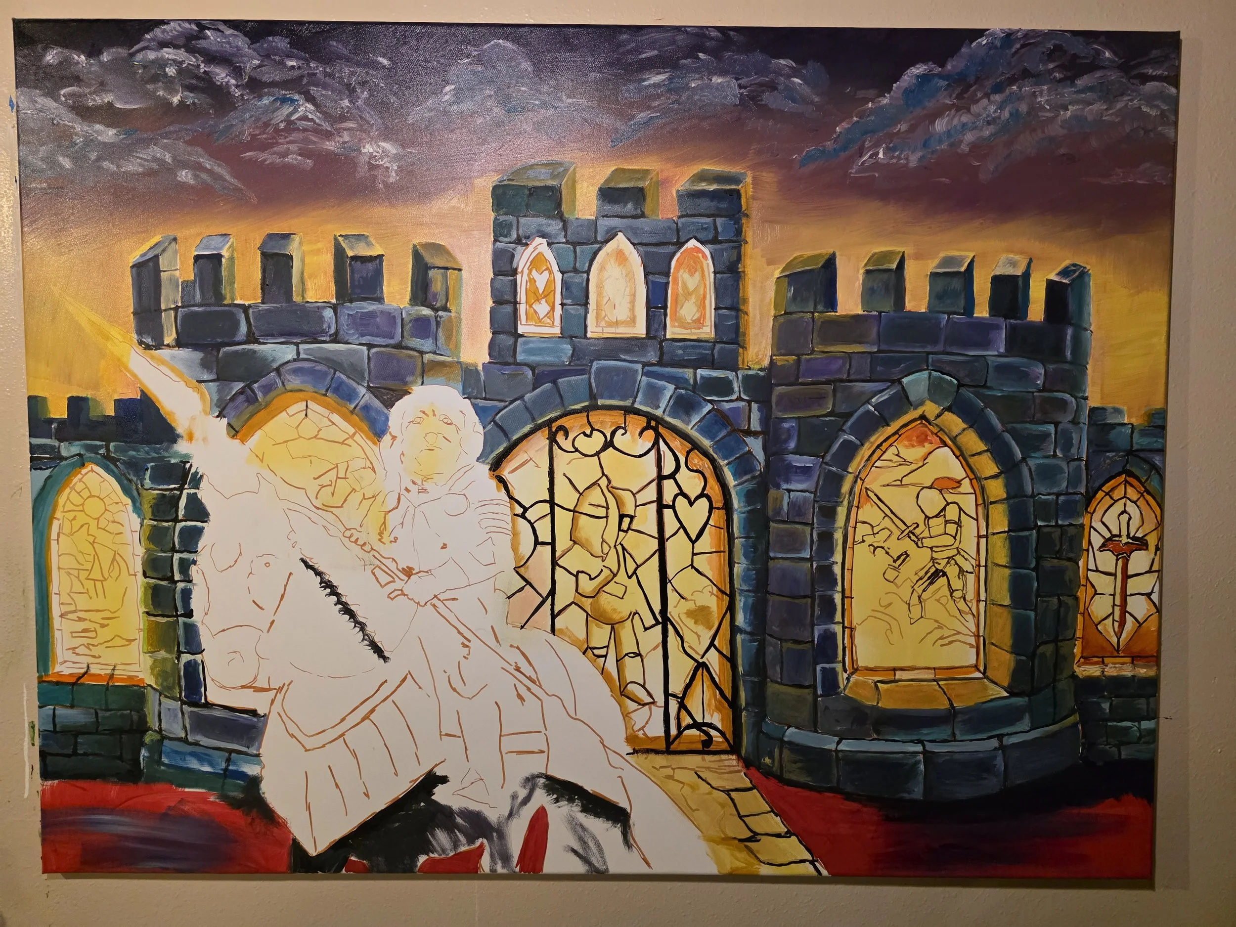 The piece utilizes a sophisticated interplay of light and shadow—the "Noble Focus" of the shrine's stark white walls set against the vertical, rhythmic "Grit" of the forest. This work is currently in the final refinement phase, with the last layers of depth being applied to the shadows and foliage to solidify its place as a cornerstone relic of the Rafterburn collection.